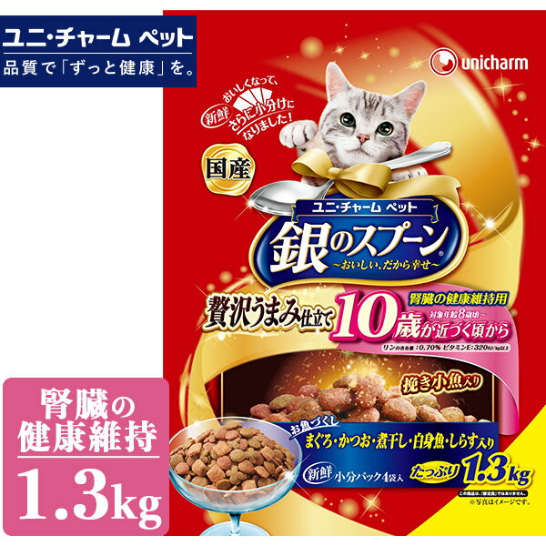 ユニチャーム 銀のスプーン ドライ 贅沢うまみ仕立て 腎臓の健康用 10歳 1.3kg【ドライフード/キャットフード/ユニチャ—ム(Unicharm)/ペットフード】【高齢猫(8歳頃から)】【猫用品/猫(ねこ・ネコ)/ペット・ペットグッズ/ペット用品】