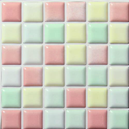 プチコレミックス:モザイクタイル【ピンク/ライトグリーン/イエロー】 [DIYに最適な25mm角] サイズ:縦150mm×横150mm(タイル 6粒×6粒)厚さ約7〜8mm 貼ってもはがしやすいタイルシート! モザイクタイル【プチコレ】はとってもカワイイ丸みのある面状で、DIY-tileでも大人気の商品。